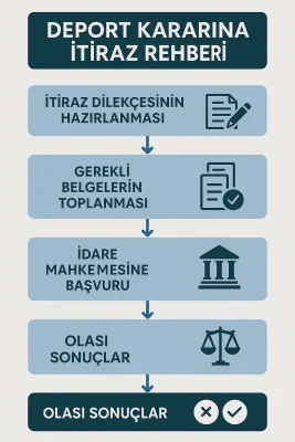 Deport kararına karşı, kararın tebliğinden itibaren 7 gün içinde idare mahkemesine başvurulabilir. Mahkeme, 15 gün içinde karar vermek zorundadır ve verdiği karar kesindir. İtiraz sürecinde profesyonel hukuki destek almak büyük önem taşır.